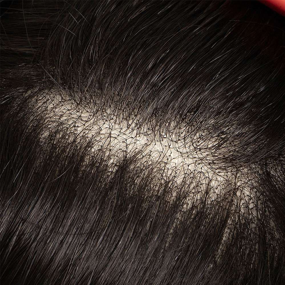Diese Herrenhaarteile für schütteres Haar sehen dank des abgestuften, gebleichten Haaransatzes natürlich aus. Diese Haarteile für schütteres Haar haben dauerhafte Knoten auf dem Rest der Basis. Die Basisgröße dieser Herrenhaarteile beträgt 8″x10″ und kann vor dem Versand kleiner geschnitten werden.